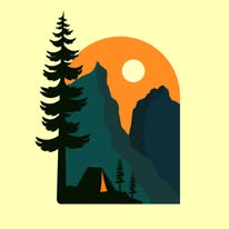 Camping in Torres del paine national park patagonia in chile with silhouette illustration style