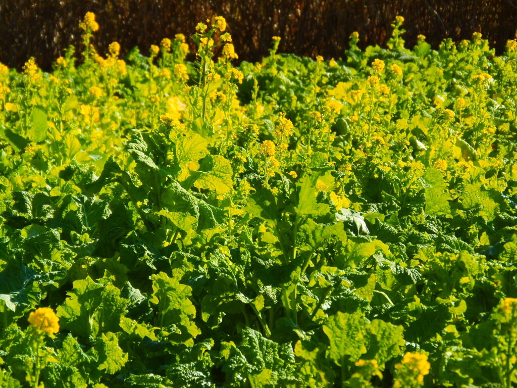 数分あるくと、山頂の菜の花畑に到着。早春の訪れを感じて一枚撮る。