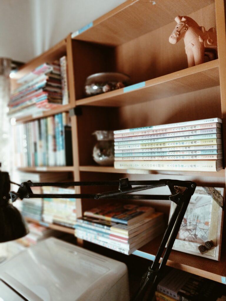 だいたい、この2年~3年間に発刊された新刊で、このデスク書棚には200冊くらいのキャパで整理して入れているのだ。
