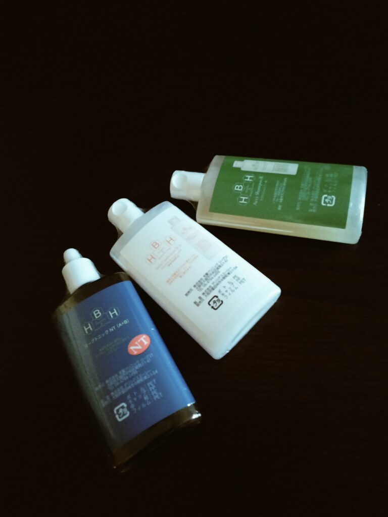 担当の女性は「当面は今回の頭皮の洗浄と毛根の刺激で活性化されるだろうから、4800円セットに含まれる「シャンプー、トリートメント、トニック」の3本でまず、1週間しっかりと洗い、頭皮のマッサージをする」という方向になった。