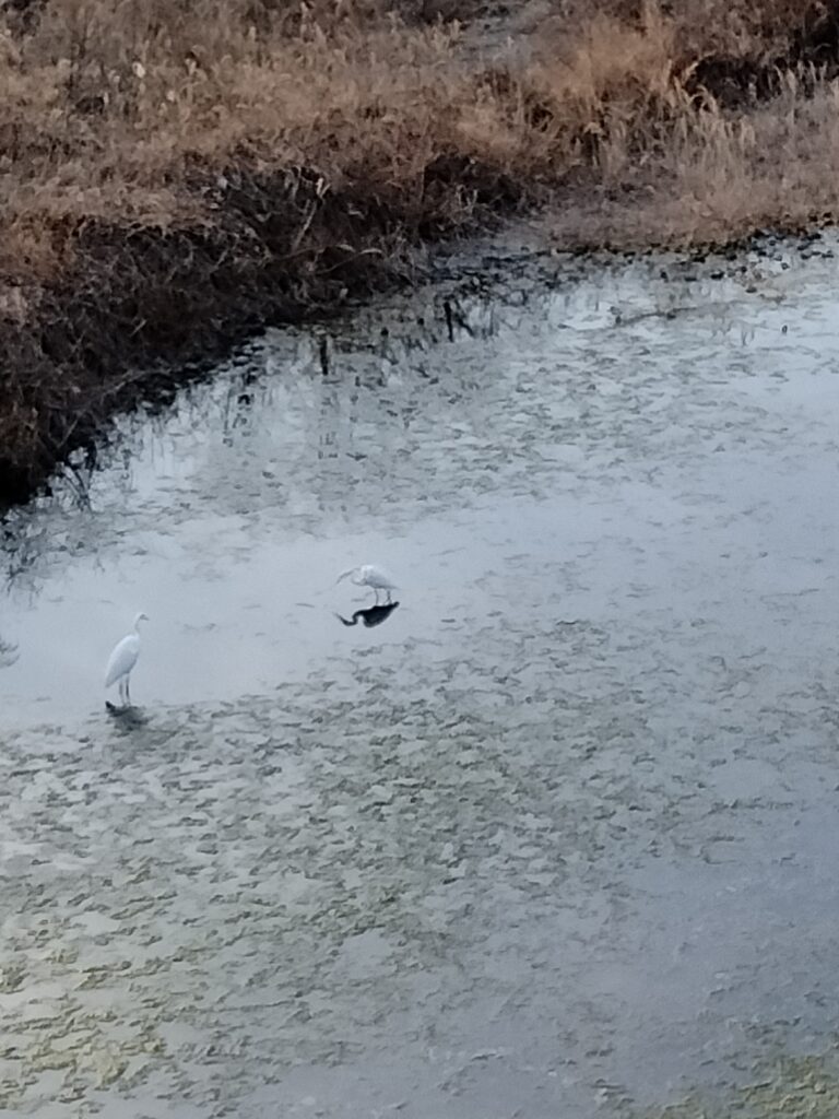 帰りの道すがら、浅川を渡す大橋のしたに二羽のシラサギが優雅に遊んでいたので一枚撮ってきた。