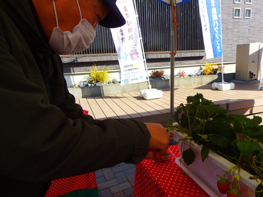そしてさらにお隣の住宅も見て、いちご狩りに参加できる2つ目のスタンプをもらい、いちご狩りに参加。