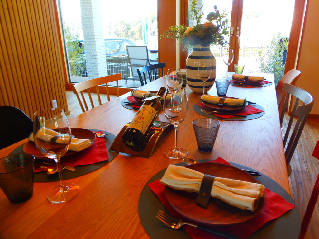 ダイニングやキッチンでのテーブルセッティングや暖炉が洗練されていた。
