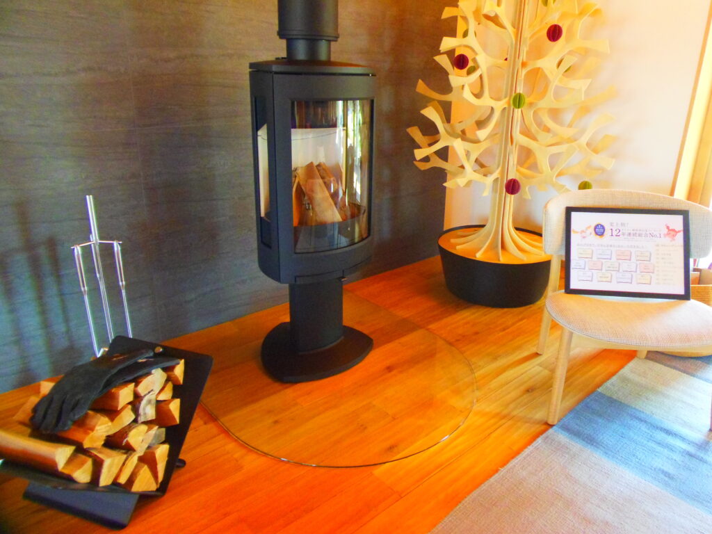 ◎暖炉はとてもスタイリッシュなデザイン。