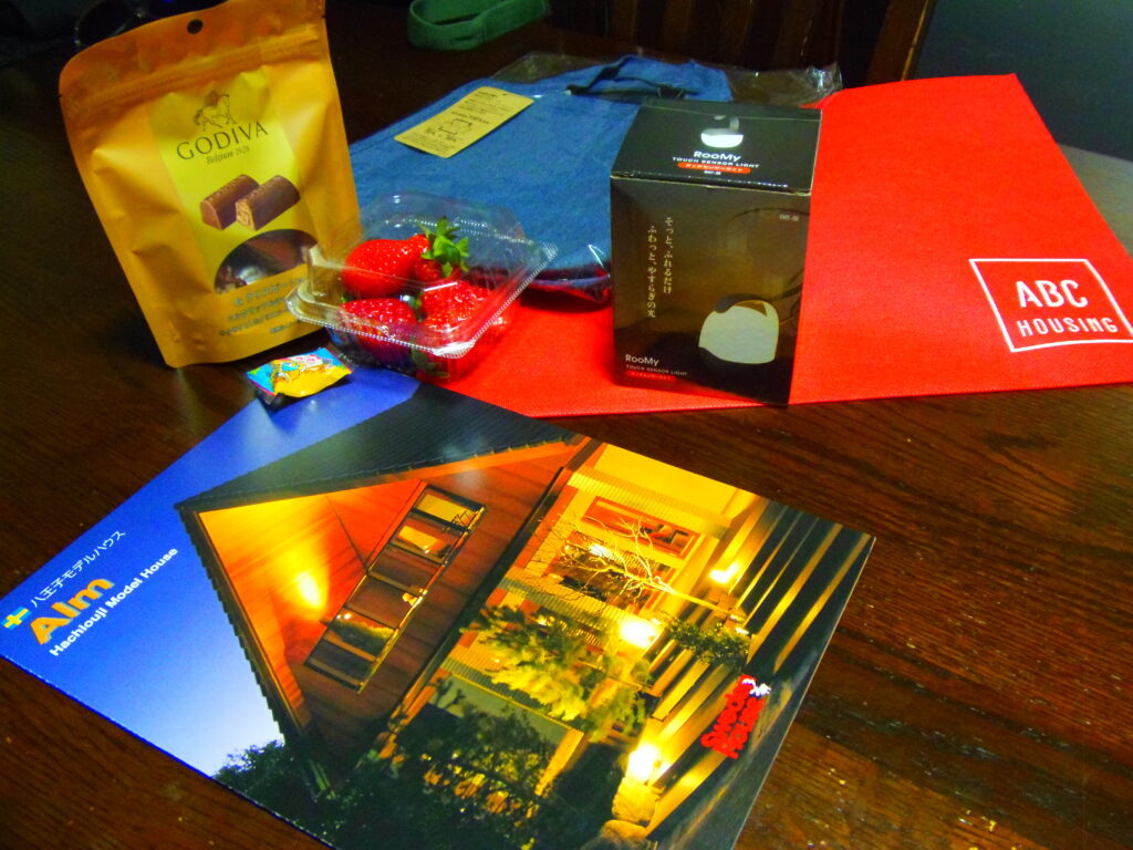 いちご狩りでもらったスタンプが使えるので、もうひとつ商品のもらえるブースのそばにある住宅を見学して、ランタンとトートバッグをゲット。