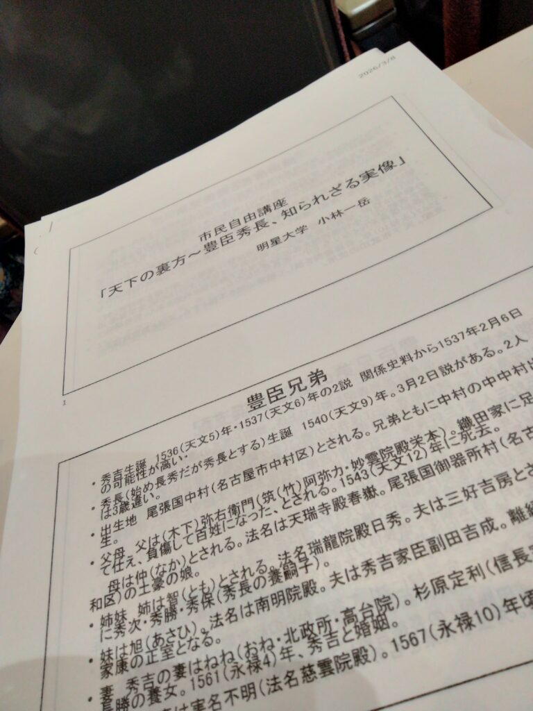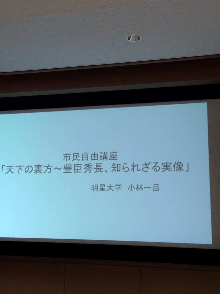 先日、明星大学・小林一岳先生の歴史講義「天下の裏方~豊臣秀長、知られざる実像」という市民自由講座に参加してきた。