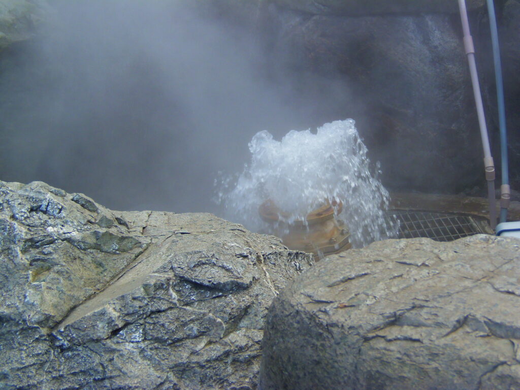 かつては世界第2位の50m自噴を誇った名所で、現在は約90分間隔でコンプレッサー等を用いてダイナミックに噴出する様子を楽しめる。