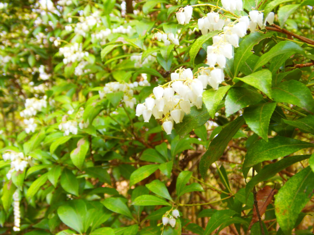 青々とした葉と白い提灯がいっぱいの馬酔木。