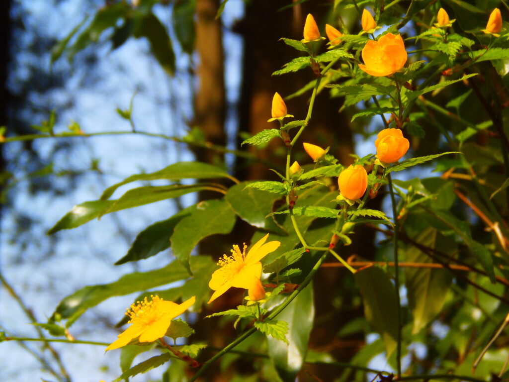 最後に、青空に映えるバラ科の樹木「山吹」の黄色を一枚入れよう。