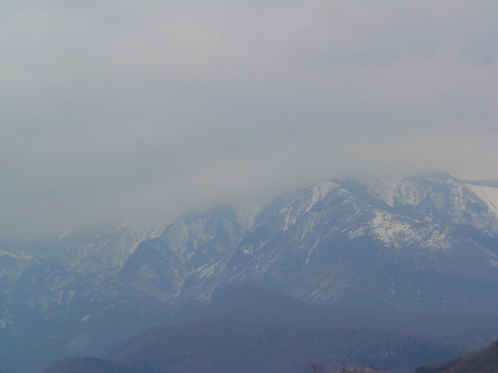 ※ 曇天の女岩とシルエットの立山連峰を撮る。