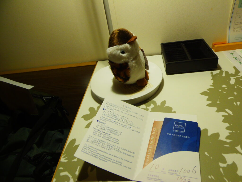 写真は、夫が室堂で手に入れた「もふもふ雷鳥」とお部屋のカードキー。