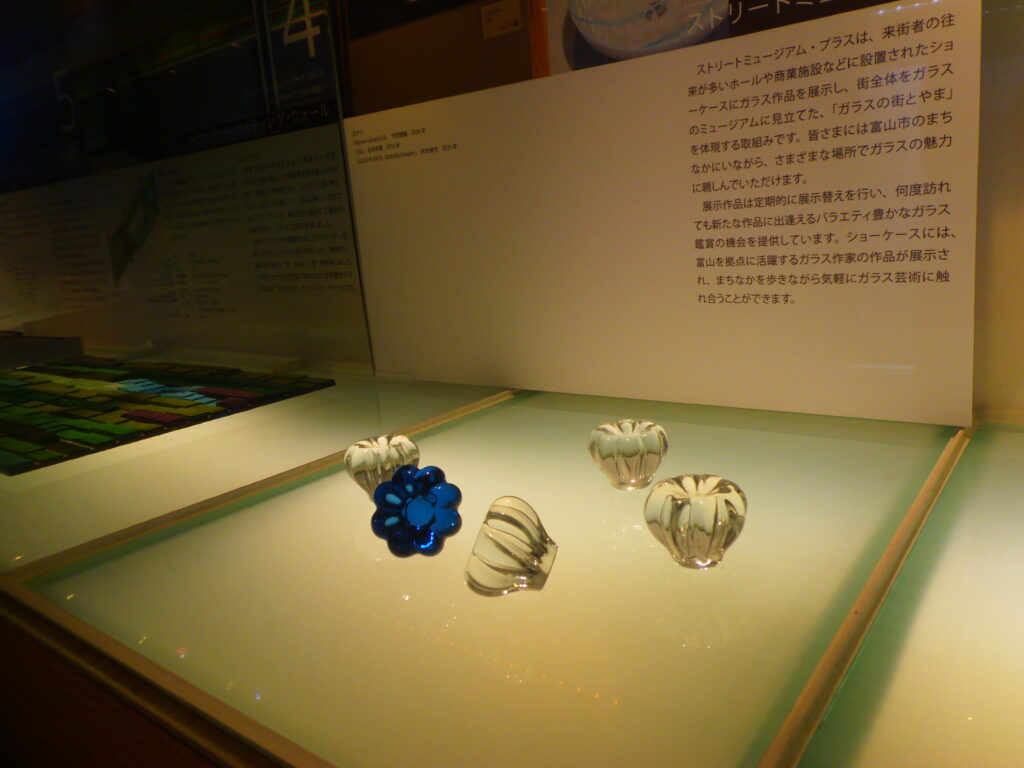 ◎ 富山エクセルホテル東急のエントランスには、新進気鋭の富山ガラス工芸家の作品が並ぶ。