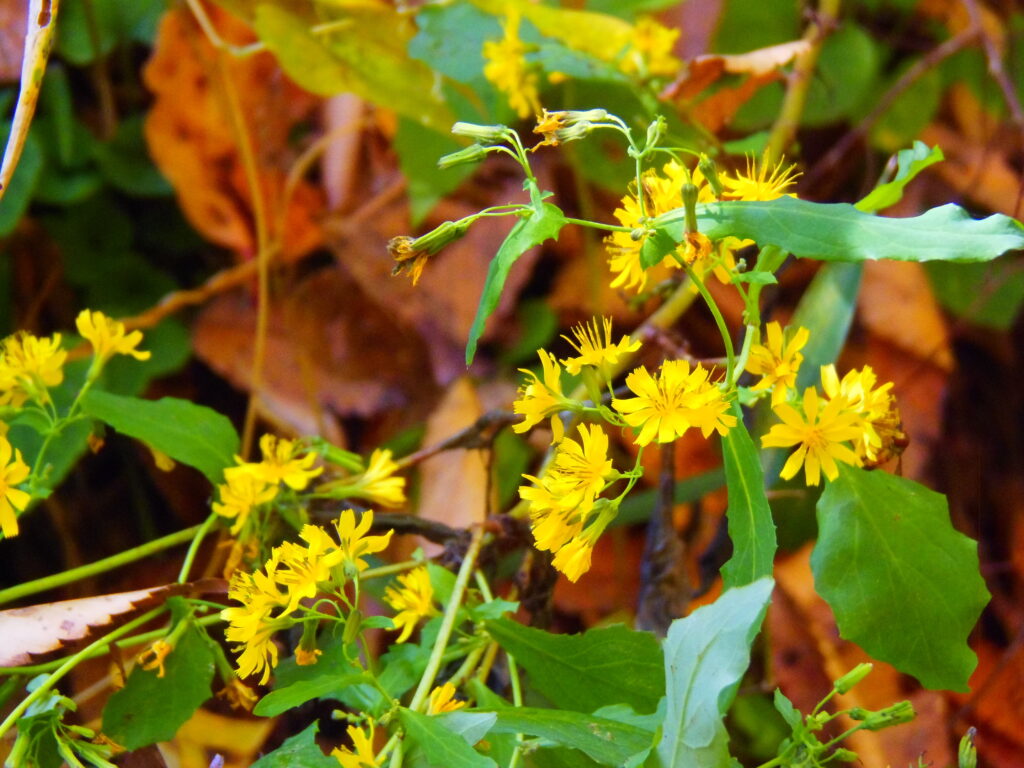 明るい黄色の花を、枝先に多数つける。蕾と花は上向きだが、そのあと下向きになる特徴がある。晩秋に開花する。