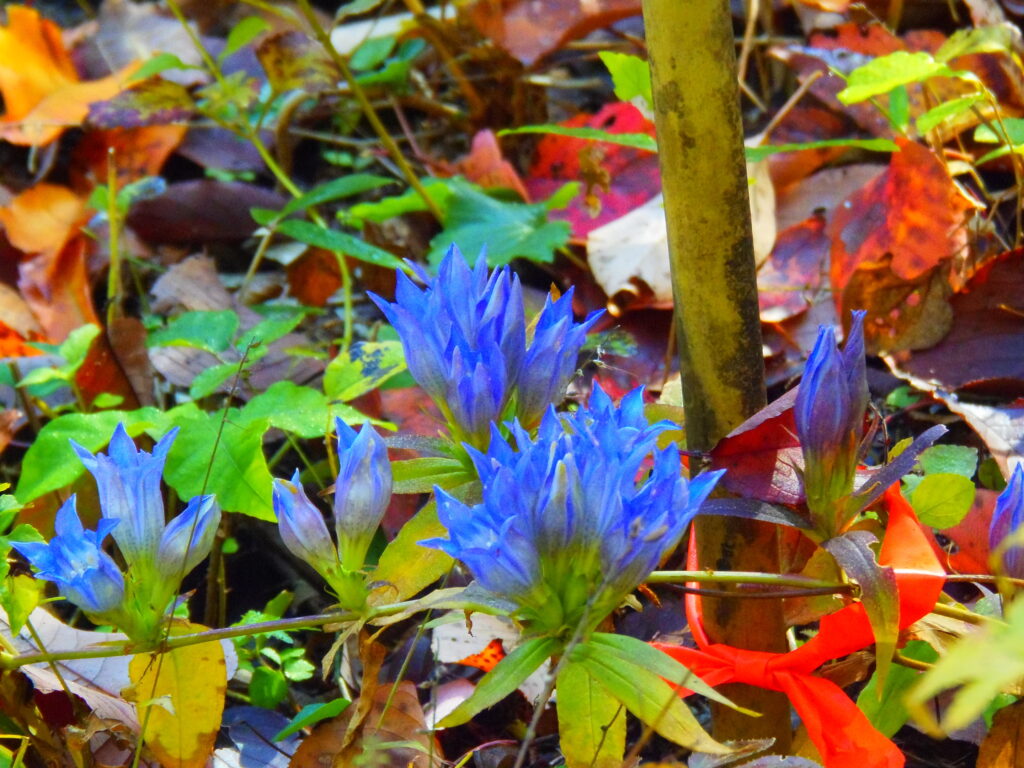 リンドウは山地、丘陵のやや湿り気のある半日影に生息している。青紫の花は目が覚めるような青さで、ねじれほどけるように咲く。秋の七草のひとつ。