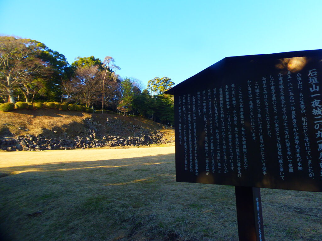 小田原合戦(1590年)で豊臣秀吉が築いた「石垣山一夜城」は、一夜で城が完成したかのように見せた伝説が有名。