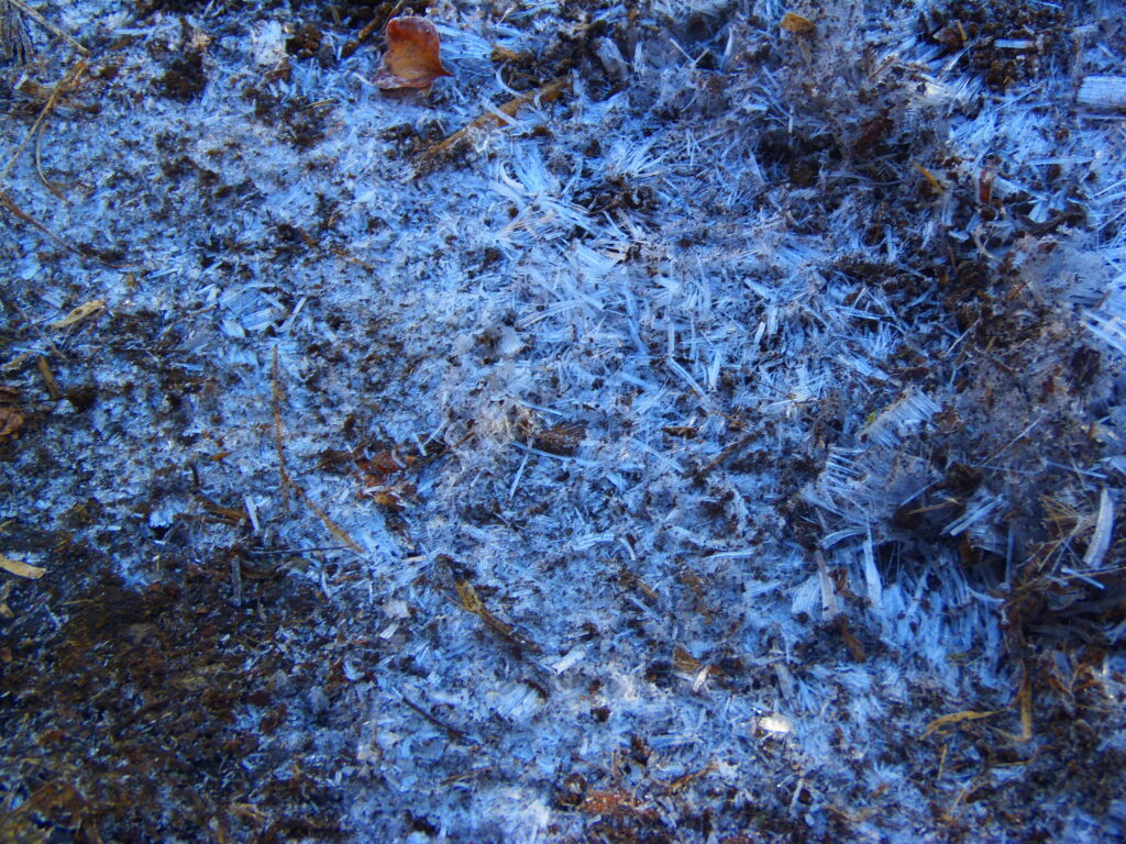 完全に凍っていた登山道。
