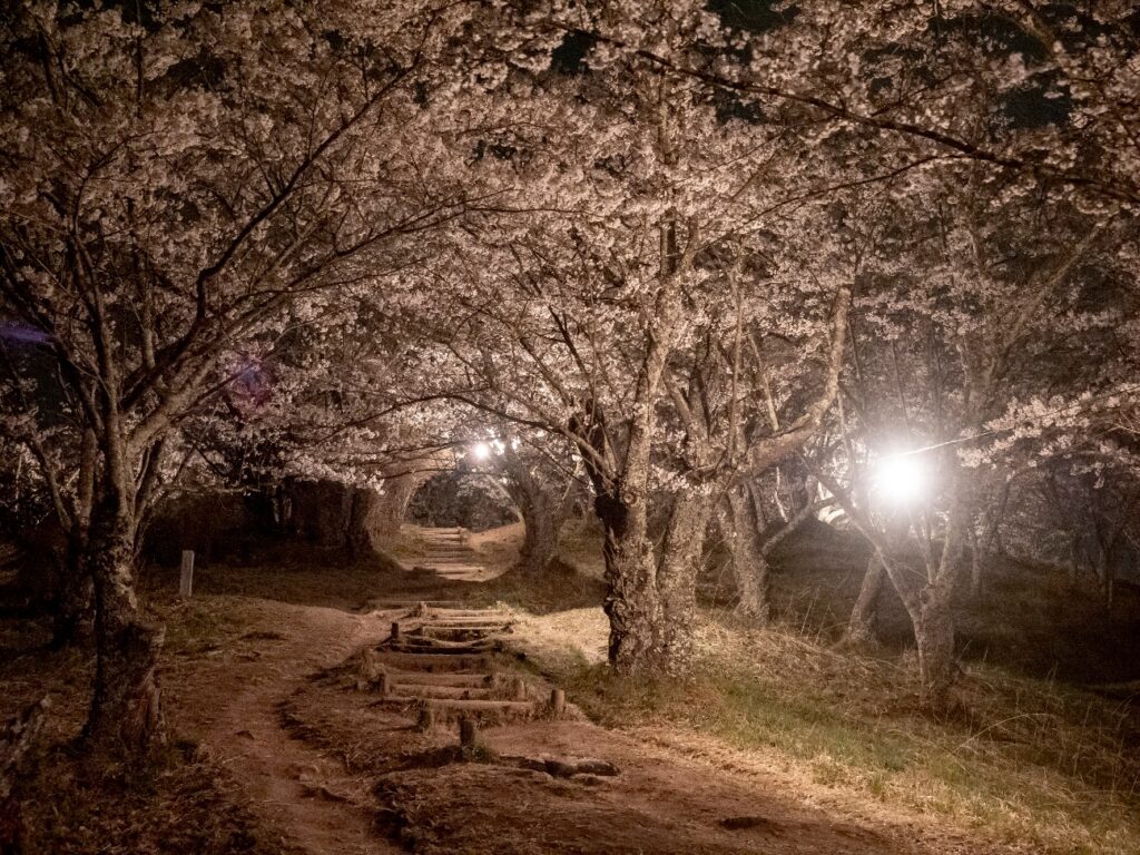 ※ 春・桜トンネルのライトアップが美しい光城山・ひかるじょうやま(標高912m)